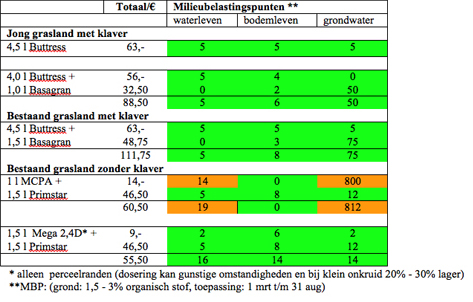 Let op! MCPA heeft een hoge belasting op het grondwater. Gebruik MCPA alleen bij groeizaam weer, dan kan met een lagere dosering gewerkt worden.