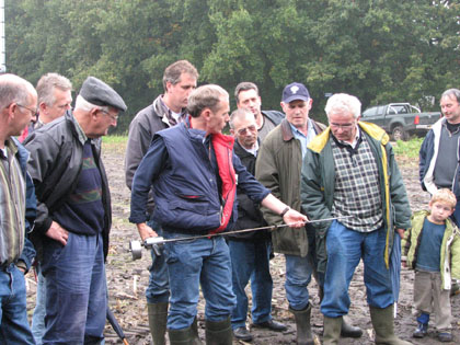 Even later is buiten het ploegen met en zonder ondergronders gedemonstreerd. Storende lagen kunnen met ondergronders worden aangepakt. Het resultaat was met een penetrometer goed te merken, de penetrometer ging zonder al te veel druk de grond in. In een profielkuil was goed te zien hoe dik de teeltlaag is en hoe de maiswortels zich door de bodem verspreiden. Een goede bodemkwaliteit is van belang voor een sterk gewas. Hierdoor zijn minder bespuitingen nodig, wat ten goede komt aan schoon grondwater. Een gezonde bodem wordt voor een belangrijk deel bepaald door de pH van de bodem. Daarom werd een deel van het perceel bekalkt.