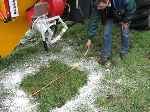 Er werd ook aandacht besteed aan de bandenspanning van de tractor, erg belangrijk voor de bodem en het brandstofgebruik. Met behulp van meel werd de afdruk van de band op de grond getoond. Het was duidelijk te zien dat de drukverdeling bij een lagere bandenspanning niet in de breedte van de band gaat zitten, maar vooral in de lengte.